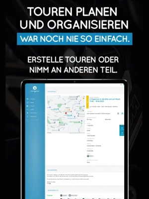 When creating you can enter all the key data, including starting point, time, route, speed, etc., of your tour. After saving, all members within a radius of 50km from the starting point of your tour will be notified.
