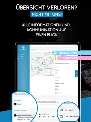 You can share your tours in all popular portals and lead everyone on Meet4Ride. It doesn't matter if the respective person is on Meet4Ride - the key data of your tour can be viewed by you - only to participate, participants have to register.