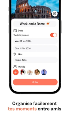 Crée et gère tes événements, qu'ils soient publics ou privés, en toute simplicité ! Invite tes amis et planifie des sorties, le tout directement depuis l'appli.