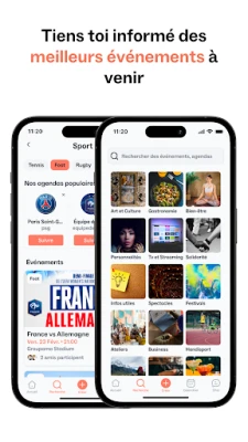 Explore plus de 50 catégories et découvre plus de 20 000 événements, qu'ils soient physiques ou virtuels, tous réunis sur une seule appli ! Que ce soit un match de foot, une expo, une sortie vidéo YouTube, ou un festival, tout est là.