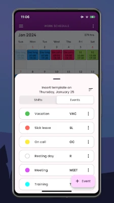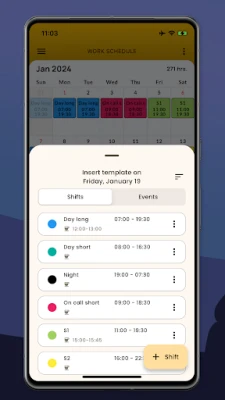 Quickly create customizable shift templates and add them to your calendar. Visualize your work schedule in a clean, intuitive, and user-friendly interface.