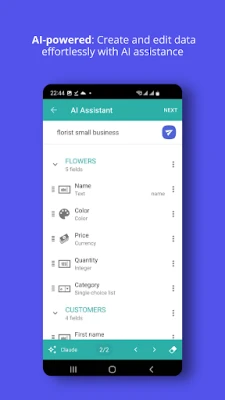 Enhance your data management with AI Assistant. This powerful feature allows AI to effortlessly create database structures and entries based on user prompts or photos. Simply instruct the AI to organize and populate your data seamlessly.