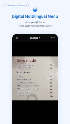 Upload a picture of your store's menu, and we'll translate it and create a QR code for you.