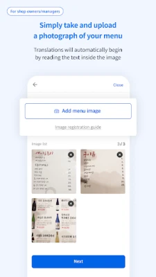 • Camera : You can register the menu by taking its photograph.