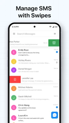 Swipe on a conversation to quickly delete, call, block, archive, or mark as read/unread. A perfect time-saving tool for managing SMS messages quickly.