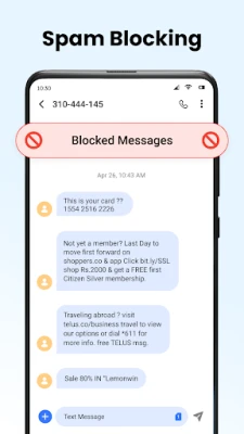 💬 Spam Blocking: Block unwanted SMS spam with our advanced Messages spam blocker. Easily add numbers to a blacklist, ensuring that your SMS and text experience remains hassle-free.