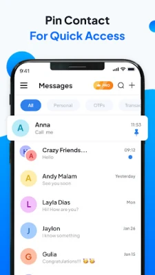 Stay organized with message categorization - personal chats, OTPs, transactions, and more. SMS Organizer Helps to organize and prioritize your conversations.