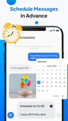 Set a date and time to send messages later – perfect for birthday wishes or important reminders!