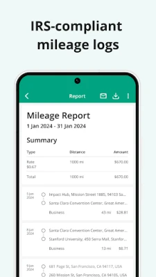 ※ IRS-compliant mileage logs for your employee reimbursement or IRS tax claims