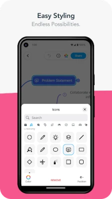 🎨 Creative Freedom with Intuitive Features. Unleash your creativity with drag & drop, zoom, and pan. Customize your mind maps with icons, colors, styles, and themes. Attach notes, links, tasks, and files to your ideas for comprehensive planning and presentation.