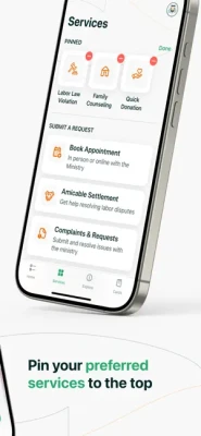 Discover a diverse array of services tailored to individuals as well as citizens and residents in the Kingdom of Saudi Arabia, including employees of both the public and private sectors, beneficiaries of social security, and people with disabilities. You can book family counseling sessions, provide assistance in reaching the needy, and review the most important rights and duties related to labor culture. People with disabilities can access Mowaama services including finding accessibly-equipped places near you, and real-time assistance from a visual guide or sign language interpreter.