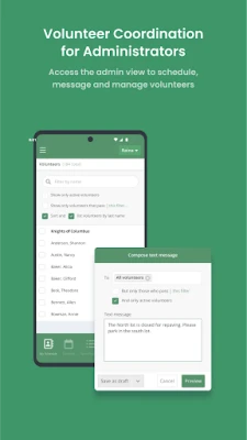 * Access the Admin view to schedule, message and manage volunteers.
