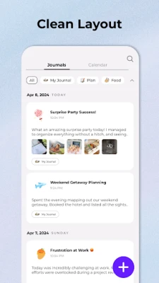 Easily revisit past entries or plan ahead with our intuitive calendar view. Perfect for habit tracking, mood logs, and self-reflection.