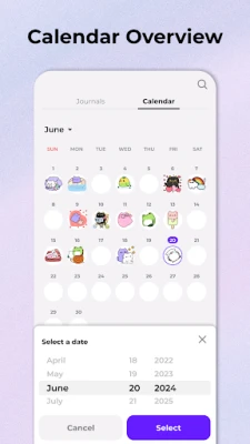 Track your emotions with adorable mood stickers. Add multiple stickers to decorate your daily entries and reflect your feelings with charm.