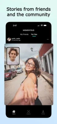 • Momentous is all about the real world. Share your everyday experiences, the highs, the lows, and everything in between. No filters, no staging, just life as it happens.