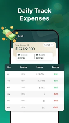 Easily track your spending habits with our smart expense tracking tools. Log your daily charges in just a few taps and categorize them (food, bills, travel, etc.) for a clear picture of where your money goes.
