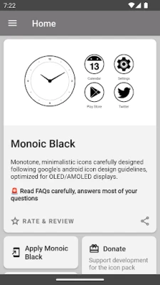 Download Monoic Black - Free Monotone Dark Icon Pack for Nova Launcher for Free and stop being stuck with your boring old classic phone icons and customise your Android smartphone or tablet with some new, stunning and awesome icons. Monoic will also let you customize nova launcher, go launcher, Evie launcher, apex launcher and many more launchers with some fresh and nice icons.