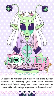 ⭐️ A sequel to Monster Girl Maker - this game further expands on creating your own little monster characters! Select, swap and colour parts such as eyes, skin, hairs, wings, legs arms, clothes and more! ⭐️