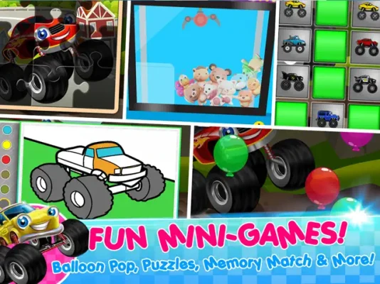 Monster Trucks Kids Game helps your child understand the educational mechanics of using mobile and tablet devices. with puzzles, memory card and heaps of fun racing action.