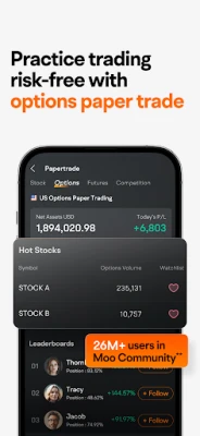 Moomoo, your smarter option in trading with $0 commission and 0 contract fees¹ on equity options for US residents, more flexibility, premium research, and advanced tools. Join a vibrant community of over 26 million users** worldwide and improve your trading knowledge with paper trading.