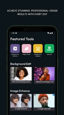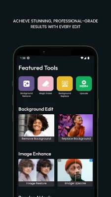 - Effortlessly remove unwanted backgrounds with precision. - Use AI to replace or restore elements in your photos creatively. - Instantly swap out backgrounds to match your vision. - Improve image resolution while maintaining quality and clarity. - Experience powerful editing capabilities with an easy-to-use interface. - Produce professional-grade images with every use.