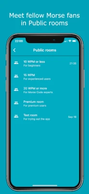 - Public Rooms. A number of rooms (10 WPM or less, 15 WPM, 20 WPM or more, Test room and so on) has been created to allow chatting with fellow Morse code enthusiasts. These rooms are open to everyone. Contact us if you have an idea for a new public room.