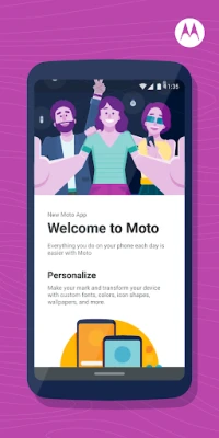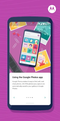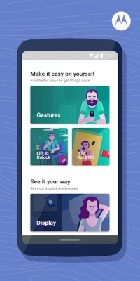 The Moto app is an engaging platform where you can find all the features that make Motorola phones easy and enjoyable to use. Inside the app, you’ll find Moto Actions, Moto Display, and other feature families that let you customize the way you interact with your device. Each time you open the Moto app, you’ll see information about the features inside so you can discover new ways to make the most out of your Moto experience.