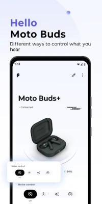 Compatible only with Moto Buds+ and Moto Buds. Available for Android 12+ devices
