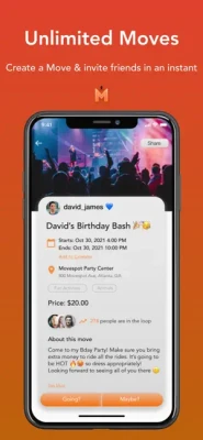 Create a Public move that anyone can attend or create a private move that only your mutual users can attend.