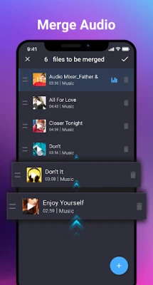 Mix two audios in any format to create a new mix. You can select the part of the audio to be mixed, or you can control the volume of the two audios in the mix to achieve the effect you want.
