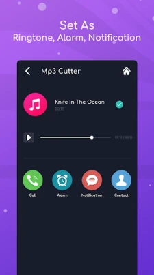 ✂Cut MP3 ringtone app help you to easily make the ringtone from your favorite songs & music file. You can use the resulted ringtone as alarm alert, notification tone & incoming call tone. You can also share the ringtone with friend form the MP3Ringtone Cutter App. Ringtone maker is also known as music editor, alarm tone maker, notification tone creator and ringtone cutter.