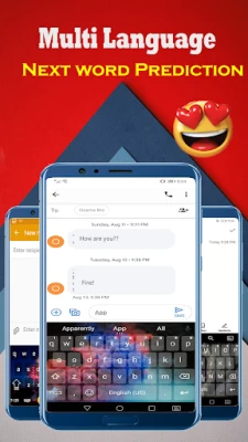 Different Emojis, themes, Emotion, fonts, and smiles are fused for you to write different text to someone special in the multi keyboard app. Multiple language keyboard app can be changed to the English Khmer 2020.