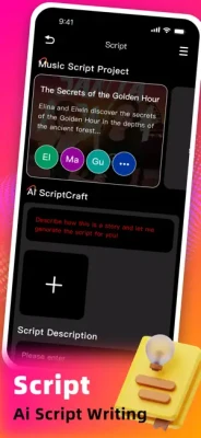 Kickstart your scriptwriting with AI-generated drafts based on your ideas and keywords, or effortlessly compose beautiful melodies by selecting your preferred themes and styles.