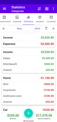 • Clear analyses: Analyze your expenses and income with detailed graphs and charts. Identify areas where you can optimize and stay in control of your money.
