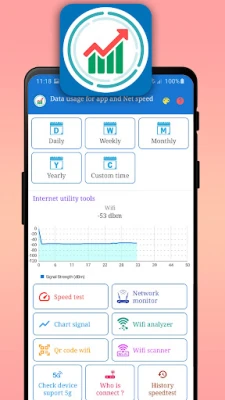 Function application 1: data usage for each app and game in time is a powerful tool that helps users easily display the "data usage" for tracking of each app or game in time on mobile devices. That is measured when your phone must be connected to the internet (via WiFi network connection or mobile signal connection: 5G, 4G/LTE, 3G, HSPA+, data measurement units are Bytes, Kilo Bytes, Megabytes, Gigabytes...