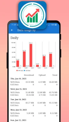 - Users can choose the time: day, week, month, year to filter and track the amount of data uploaded and downloaded for each game and application.
