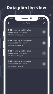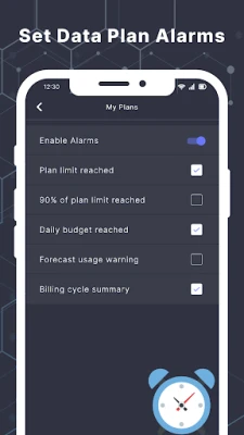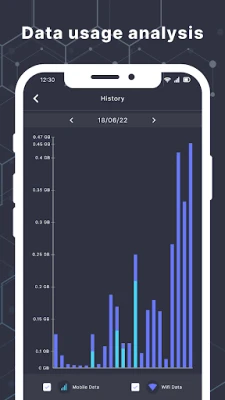 Data Manager is a complete mobile data tracker, monitoring your usage in real-time, so you know exactly which of your interfaces is active (mobile, Wi-Fi, roaming) and how much data you are using.Control your mobile data plans, understand your data usage, prevent rising mobile costs and avoid overage and roaming fees. My Data Manager allows you to do all this as well as set custom usage alarms that avoid overage charges while you browse or the possibility of running out of data.