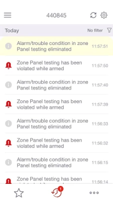 • Look back at activities over time in the events history. Know who armed or disarmed the system or which zone was violated.