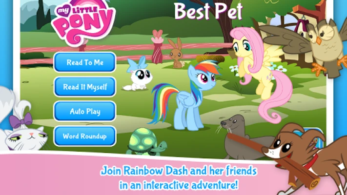 MY LITTLE PONY: Best Pet is a wonderful introduction about choosing a pet, valuing difference, and appreciating friendship. This new interactive storybook app is designed to help emergent readers practice their English skills while following the adventures of their favorite characters.