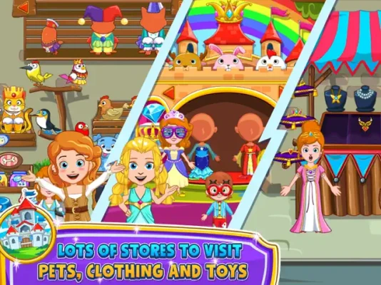 My Little Princess Stores is a storytelling digital dollhouse game where every game is a new adventure. Have fun pretend playing in the princess village stores. Get the latest fashion at the Clothing store, dressup, makeup and lots of clothing. Find you new best friend and the local Pets store or simply visit the supermarket for some food and party items. There are lots more shops and locations for you to play and discover in Little Princess Stores.