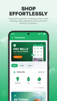 * Commerce: Pay your utility bills and plan your travel with our ticketing services
