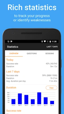 The app provides updated statistics to track your progress and can be easily synced to other devices. Use the statistics reports to see your strengths or weaknesses.