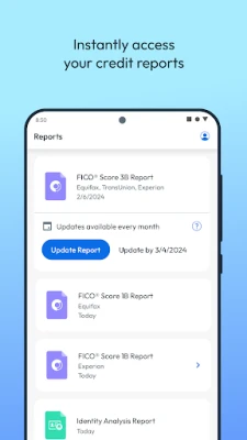 • Reports – Instantly access your credit reports and credit data