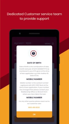 You can access MyFIRST Bharat app in a few simple steps of entering your Date Of Birth and mobile number registered with the Bank and authenticating yourself through OTP.