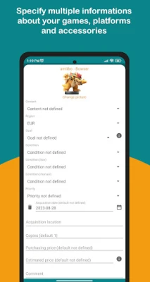 - Fill the information of a game (status, region, time played, copies, note, acquisition date, purchasing price...)