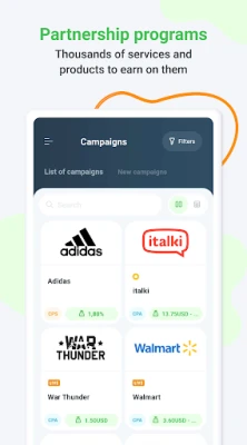 Our app provides perfect capabilities for an affiliate marketing publisher who knows their stuff. Check out current programs, news, statistics, and track your earnings. Having your account always at hand will give you the best control over your actions.
