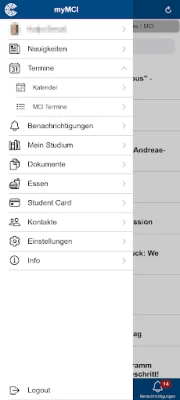 Die myMCI App bietet über 20 wichtige Funktionen zur Erleichterung des Studienalltages am MCI.