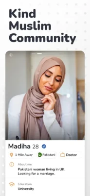 Are you a single Muslim or single Arab and want to message with Muslims, make friends, meet women or meet men? MyMuslim is a free Dating app for Muslims and Arabs that combine matching, chatting, dating to find Muslim marriage (Muslim Nikah). Not like in other online dating apps, the goal is to chat with people, meet new people, get together and make meaningful Long-term Relationship which would lead to Muslim Matrimony.