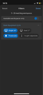 If you immediately need a room for a meeting or an informal place to talk, select your preferred workplace and see which meeting spaces are currently available.
