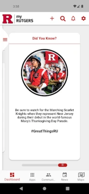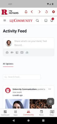 myRutgers university portal available for Android mobile devices. Access the university on the go: my Dashboard of personalized information, my Apps links to online services, my Maps to check campus building and bus location, my New for Rutgers news, and join my Community for online discussions, collaboration, communications, and event calendar.
